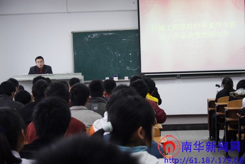 大会由黄华勇老师主持。首先,徐雪峰老师就做好经济困难学生的调查摸底工作,建立贫困生档案;加强对勤工助学工作的监督管理;加强队伍建设,成立学院勤工助学部;顺利有序地开展各项奖、助学金的评定工作;积极推动落实国家贷款工作等五个方面作了全面细致的总结。同时,他也指出了我院在勤工助学工作方面存在的不足,并且提出了相应的改进措施。接着,我院党总支副书记彭巧云对同学们提出了几点要求:树立感恩意识,珍惜助学机会;树立诚信意识,履行工作职责;拓展自身素质,打造精彩人生。机械052班李春波同学作为贫困生代表发言,他感谢学校一直以来对贫困生的关心和照顾,决心将以崭新的面貌迎接挑战,以优异的成绩报答母校。