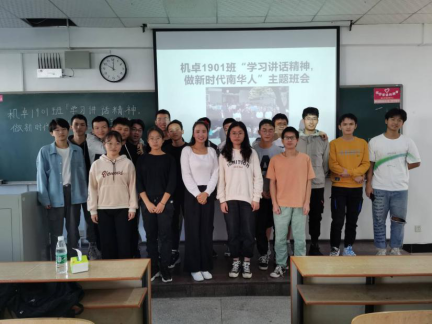 为深入学习习近平总书记在湖南考察重要讲话精神,深入推进“共建美丽南华”活动,倡导校园文明风尚,培养德智体美劳全面发展的时代新人,机卓1901班于10月27日上午9点在一教308举行了“学习讲话精神,做新时代南华人”主题班会。参加本次班会的有辅导员邓丽老师以及机卓1901班全体学生。
