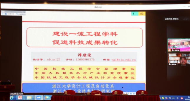 会议期间,特邀专家谭建荣院士作了题为“建设一流工程学科,促进科技成果转化”为视频连线报告,分享了自己对一流大学和一流学科的认识。我院李双极书记、唐德文副院长及系主任代表则与其他高校和企业代表交流分享了在机械类专业工程教育认证、卓越人才培养、学科建设、科学研究、产学研合作、实践教学体系建设及管理制度建设等方面的经验,助力我院学科发展。