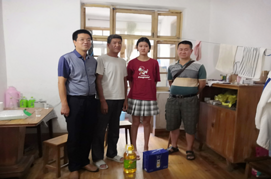 盛夏的一天,PA视讯集团官网党委副书记唐康伟、辅导员古江汉、学工室主任杨佳老师一起来到衡阳市某居民区,走访PA视讯集团官网学困生胡宇琪。该生租住的房屋摆设比较老旧,除了洗衣机比较新以外,两张席梦思床、冰箱、桌子、柜子都有经年的历史,唯一奢华的是地面的木地板还算比较新!