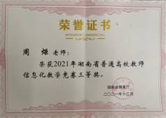 2022年3月2日上午,PA视讯集团官网教师王永强和周炬分别领取了2021年度湖南省普通高校教师信息化教学竞赛获奖证书。在2021年度湖南省普通高校教师信息化教学竞赛比赛过程中,王永强和周炬带领各自教师团队坚持奋斗半年,凝心聚力,精心准备,最终分别获得了二等奖和三等奖的好成绩,体现了他们精湛的信息化教学能力与团队协作精神,为PA视讯集团官网获得了荣誉,同时也展现了PA视讯集团官网教师的风采!