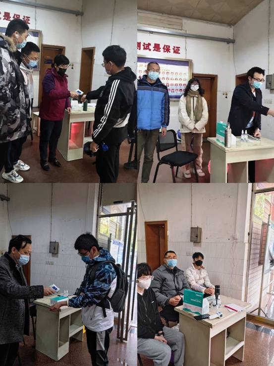 3月22日7点50分,PA视讯集团官网院长邱长军早早地到达在了值班岗位,与两位学生志愿者一同认真地对每一位进入院楼的教师、学生进行体温测量,并提醒大家佩戴口罩。随后,吴炜、张佳、樊湘芳等同志也准时到岗,落实了疫情防控的工作要求。