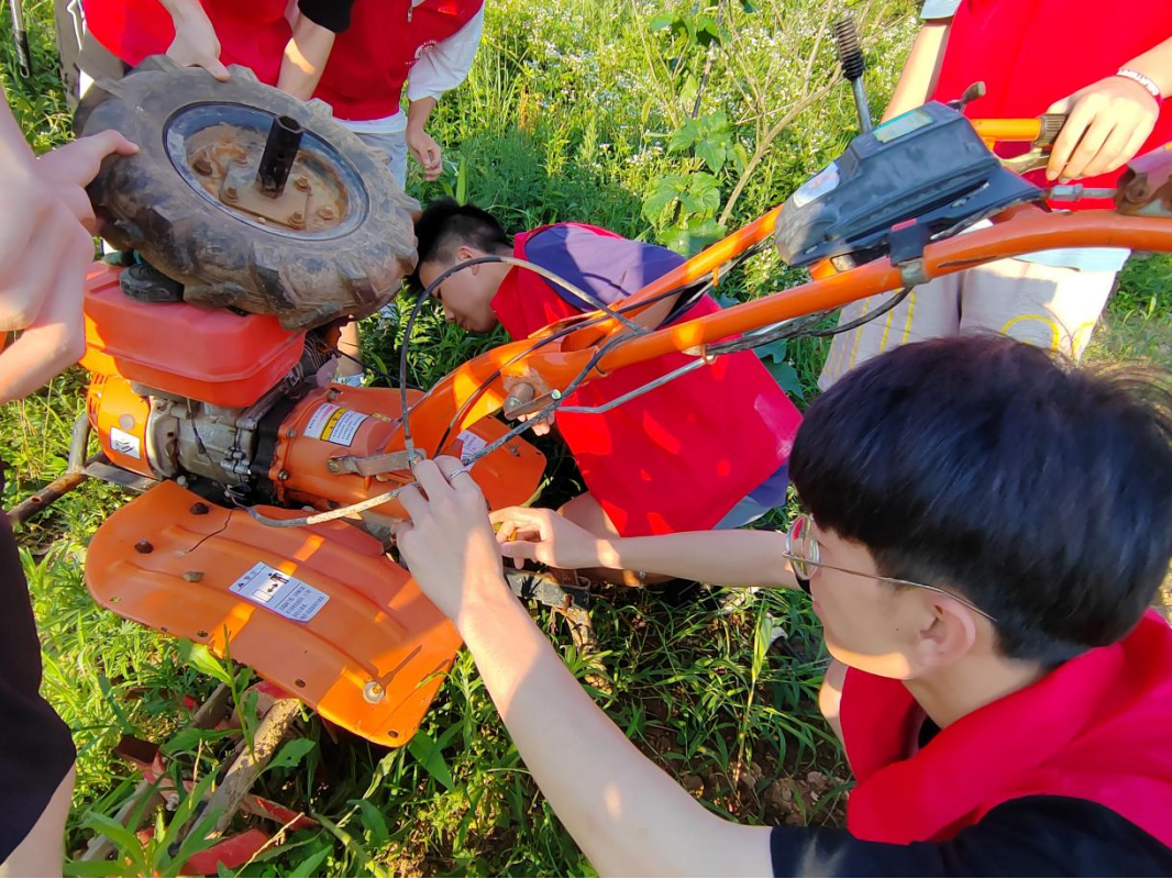 活动中,团队志愿者帮助当地农民清除农田里的杂草,利用学习到的专业知识,主动修复农户家坏掉的割草机,得到农户们的赞扬。