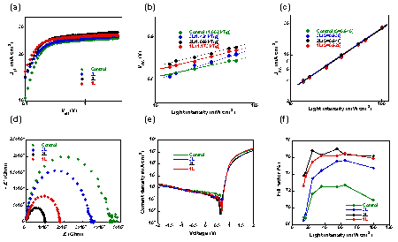 研究人员探讨了不同层数二维Cd0.85PS3Li0.15H0.15掺杂剂作用于OPV器件的物理机制。结果表明,基于双层Cd0.85PS3Li0.15H0.15掺杂的OPV器件能够在促进激子产生和解离方面达到平衡,不会增加陷阱辅助的单分子复合,能抑制器件的双分子复合,从而提高了器件光电流。同时,基于双层Cd0.85PS3Li0.15H0.15掺杂的OPV器件削弱了体电荷复合,有效填充了D18:L8-BO活性层的陷阱,降低了器件的漏电流,从而基于双层Cd0.85PS3Li0.15H0.15掺杂的OPV器件具有最大的填充因子。