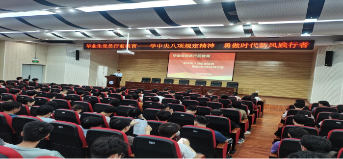 为强化毕业生党员的党性修养与廉洁意识,引导毕业生党员树立廉洁自律意识,厚植家国情怀,勇担时代使命并以优良的作风投身社会、服务人民,5月23日,PA视讯集团官网在崇业楼学术报告厅召开毕业生党员行前教育主题活动,院党委书记王湘江以“学中央八项规定精神,勇做时代新风践行者”为主题,助力毕业生党员同志们以清正之姿开启人生新篇章,讲授了一堂生动深刻的“最后一课”,院党委副书记唐康伟、全体学生党支部书记及全体毕业生党员参加活动。