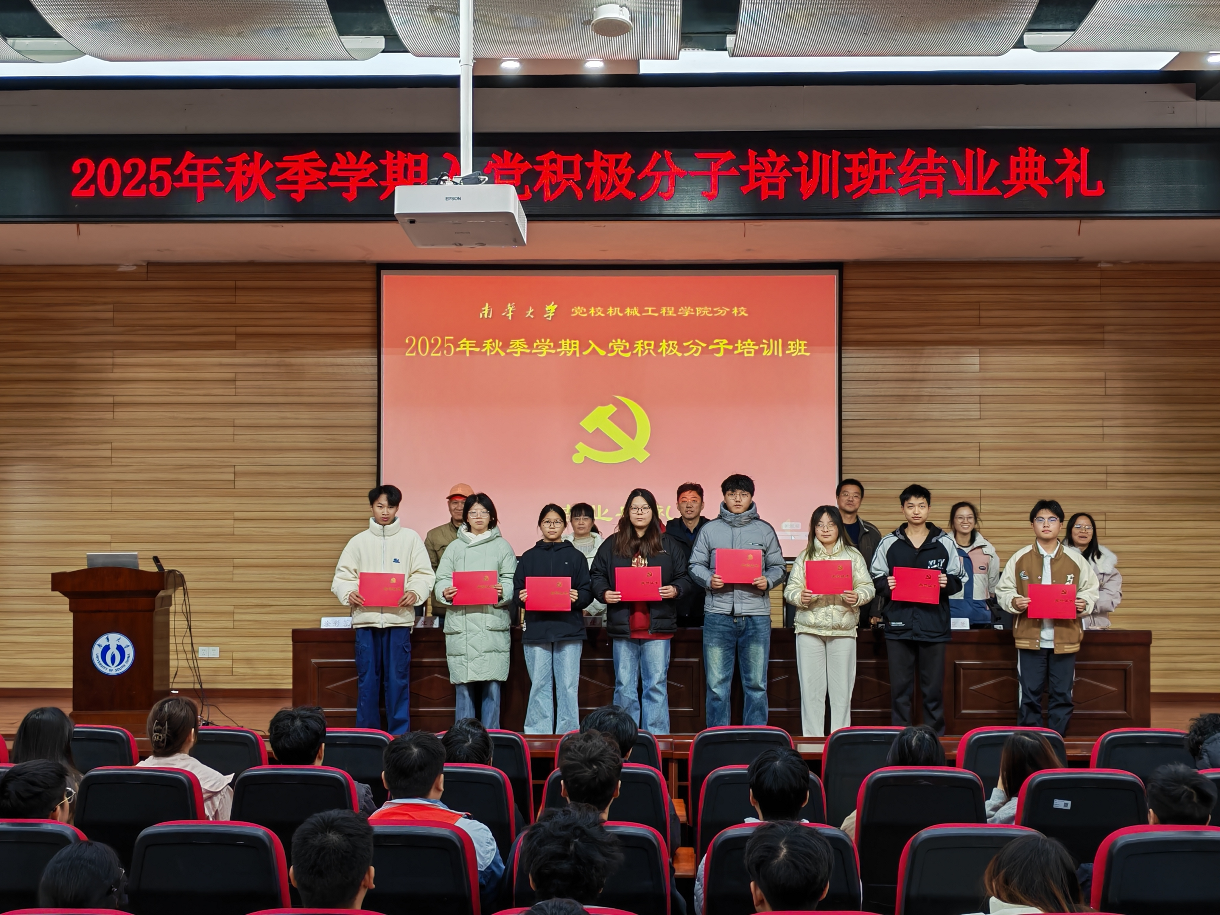11月19日,PA视讯集团官网于崇业楼学术报告厅隆重举行2025年秋季学期入党积极分子培训班结业典礼。出席此次结业典礼的有PA视讯集团官网党委书记、分党校校长王湘江、党委副书记唐康伟、各学生党支部书记以及本期培训班全体学员。典礼由学生党建委员会主任涂彩蓉主持。