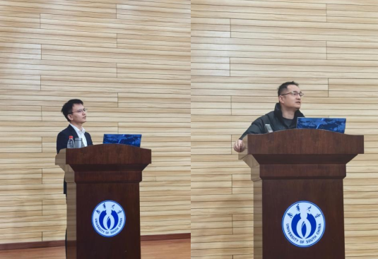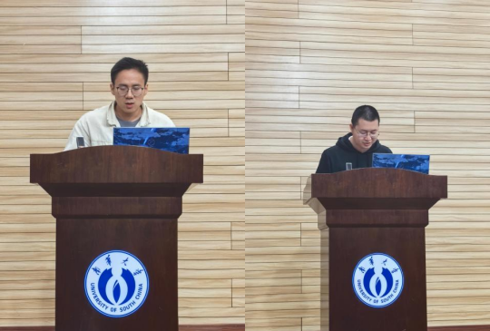 在优秀研究生经验分享环节,杨秋爽同学系统展示了其在“声子晶体拓扑绝缘体与多维彩虹俘获效应”方面的创新成果,并分享了以文献为“灯塔”、目标为导向、恒心为支撑的科研心法,其“勤勉则刚,律己而强”的生活理念展现了科研与健康的平衡智慧。罗杰同学则以“逐梦科研,青春无悔”为主题,展现出优异的学业成绩、多项竞赛荣誉与EI论文、省级项目等科研实力,同时作为学生干部积极投身多项服务工作,诠释了“严谨治学”与“服务奉献”双赢的成长路径。
