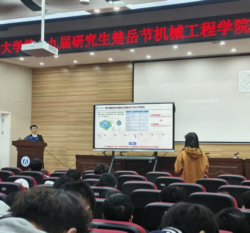 林英华教授则以《Cr12MoV冷轧工作辊表面激光增材及再制造控形、控性研究》为题,展示了激光先进制造技术在关键工业部件修复与性能提升中的创新应用。他详细讲解了在外场辅助下实现涂层“控形”与“控性”的强韧化机制,并鼓励同学们将前沿理论与工程实践深度融合,真正做到“知行合一”。