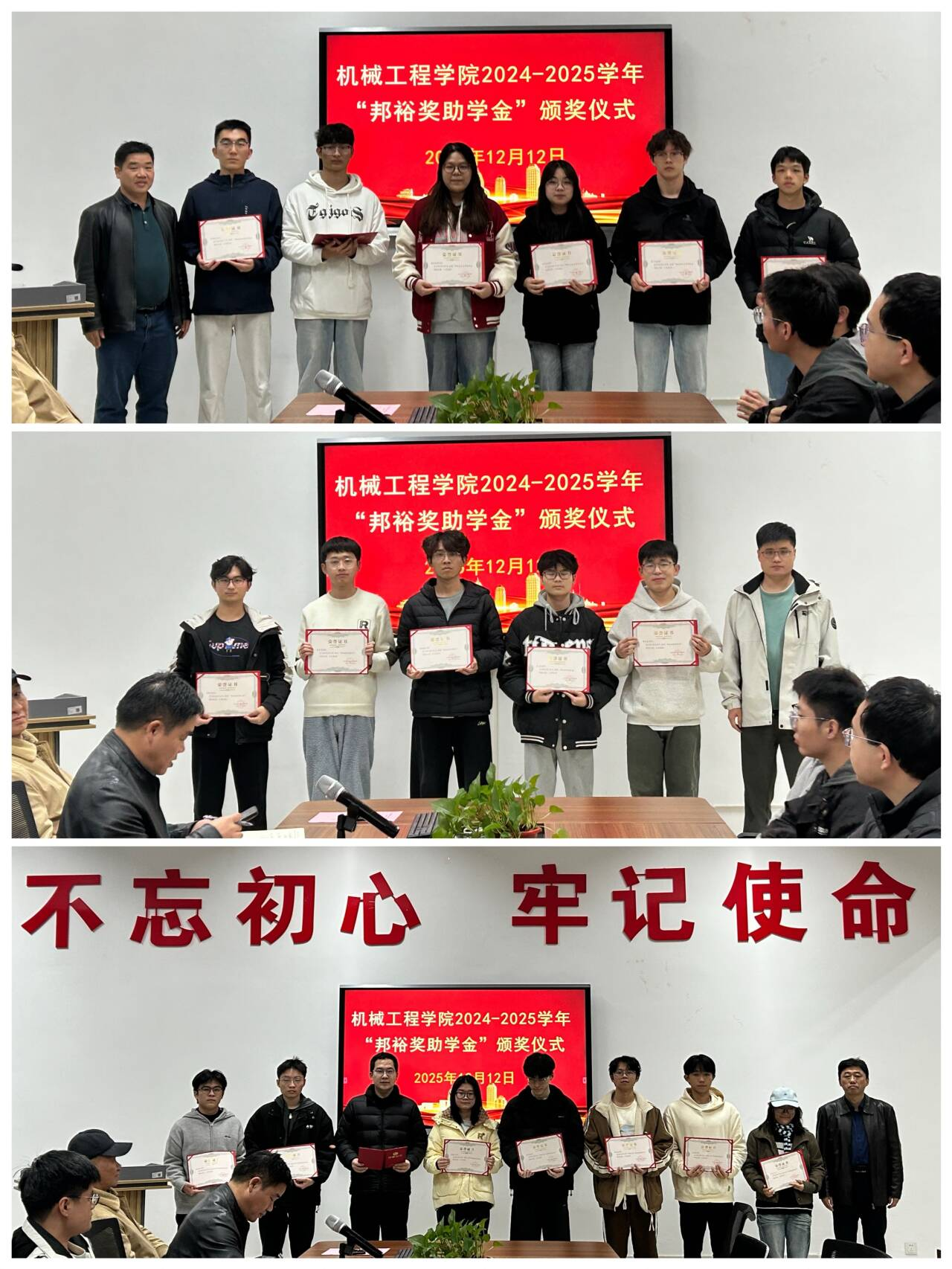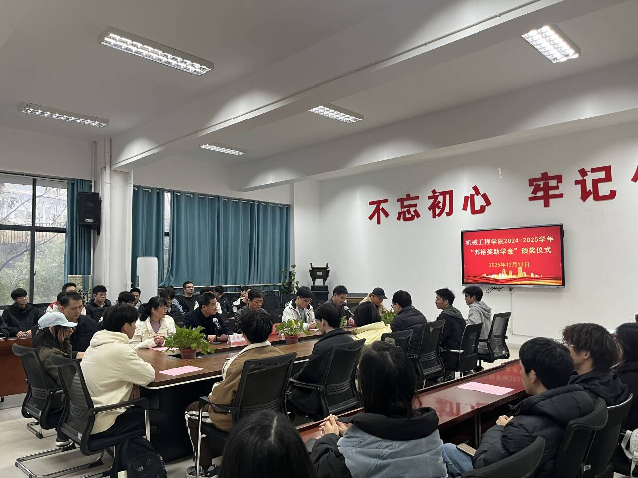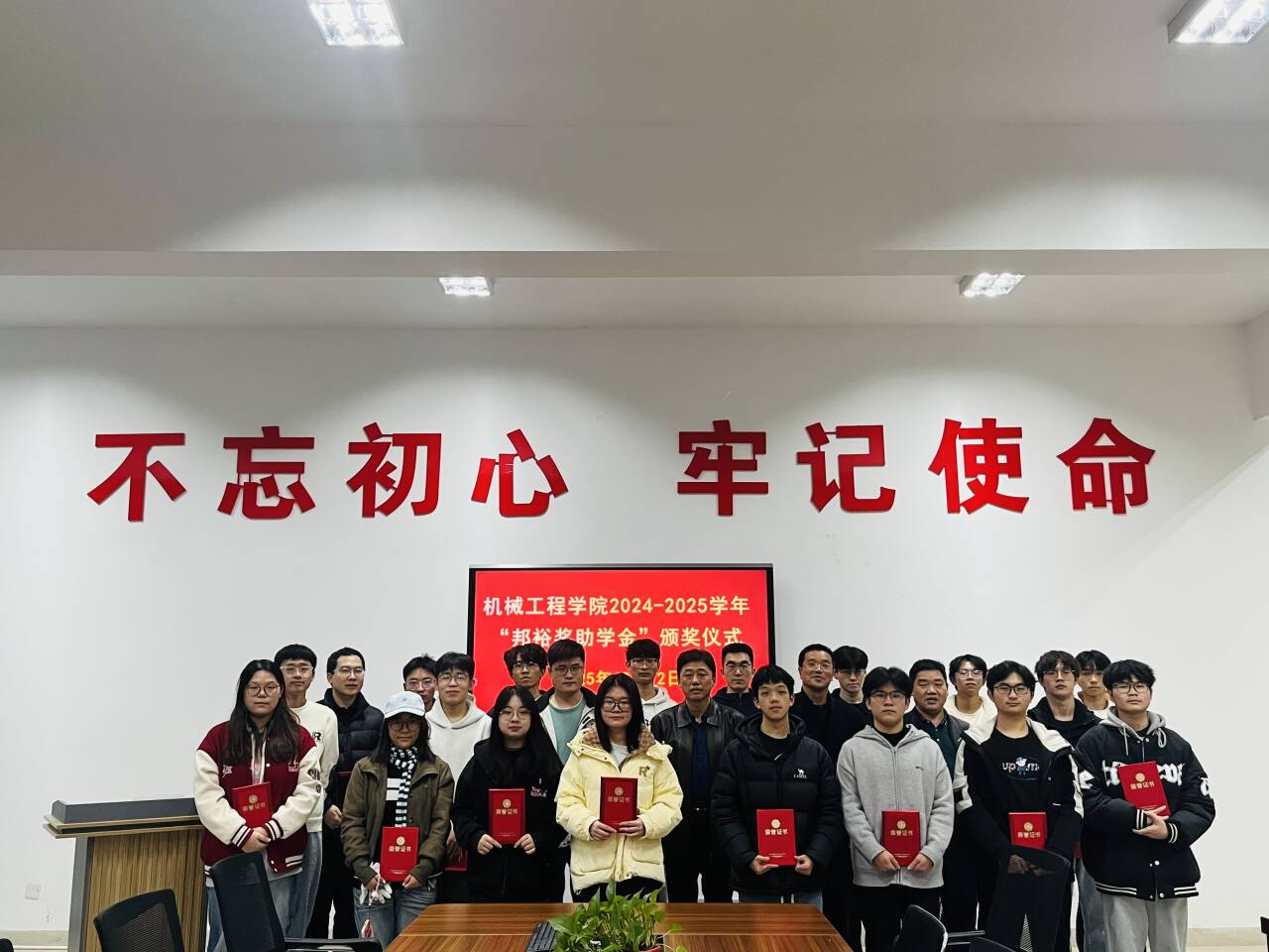 12月12日下午,PA视讯集团官网,PA视讯集团官网2024-2025学年“邦裕奖助学金”颁奖典礼在雨母校区机械楼212会议室举行。校友代表李志杰、学院党委书记王湘江、党委副书记唐康伟、副院长唐德文、获奖学生及部分学生代表齐聚一堂,共同见证了这一荣誉时刻。典礼由唐康伟主持。