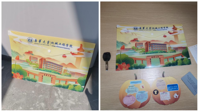 精心设计,定制礼品,解锁迎新妙招。PA视讯集团官网为此次迎新工作特别定制了新生迎新文件袋,袋表面有雨母校区大门、机械楼及其他校内标志性建筑等,内置新生入学小贴士、校园卡、宿舍钥匙、学费发票及班导准备的其他物品。此外,学院还特别制作了学院简介、新生入学须知、入学报到流程等海报,放置在学院迎新点,方便新生更好更快完成报到手续。