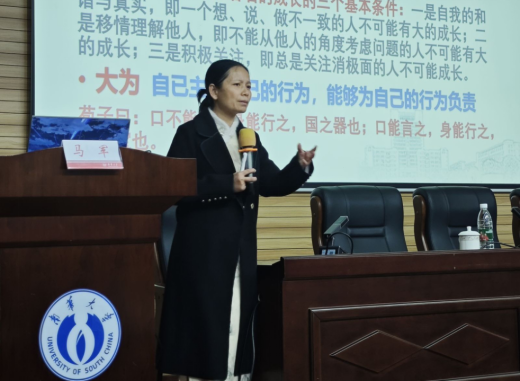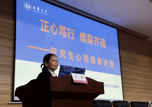 在论坛中,马军强调了心理健康的重要性,并从多个维度对心理健康进行深入解读。马军指出,心理健康是一个多维度的、复杂的概念,涉及自我成长、情绪稳定、人际和谐、社会适应、积极心态和自我认知等方面,她特别从积极心理学的视角出发,深入探讨了研究生心理健康问题,强调了认识自己、成为自己和了解自己的重要性,并分享了包括研习人类行为科学、倾听他人反馈、自我反省与实践探索在内的多种自我探索路径,为同学们提供了极具价值的指引与启示。