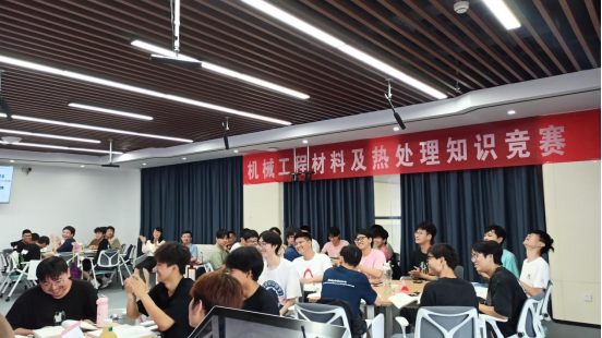 随后,正式开始知识竞赛,活动在热烈而进展的气氛中进行。一共分为五队,队长轮流作为擂主通过学习通发题,其余四队进行抢答,每题答案并解释正确得2分、答案正确但解释不正确或不到位得1分、答错扣1分。各队激烈角逐,团结合作,同学们纷纷展现出了自身较丰富扎实的机械工程材料及热处理知识储备。经历三轮较量,欢呼声、鼓掌声、遗憾声交织在一起,竞赛进入白热化阶段。随后进入中场休息,由两班6名同学带来了自创的精彩情景剧《金属的四重奏》,融入了重要的热处理知识,带动了整个现场气氛,大家乐在其中。