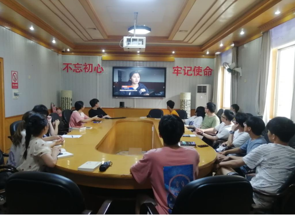 全体参会人员观看《湖湘师表·丁德馨:不忘初心的领路人》,了解丁德馨老师的先进事迹——丁德馨老师多年来不断与病魔战斗,年轻时因下乡劳动患上强直性脊柱炎,之后又患中风,病痛缠身,但仍旧奋战在科研战线上,同时不忘教师职责,认认真真指导学生,创造了一系列教育科研成果。35年来,丁德馨牵头先后攻克了“铀矿堆浸高效喷淋系统”“大通量离子交换装置”等关键技术,多次获得“国防科学技术奖”、“湖南省技术发明奖”、“湖南省科技进步奖”。