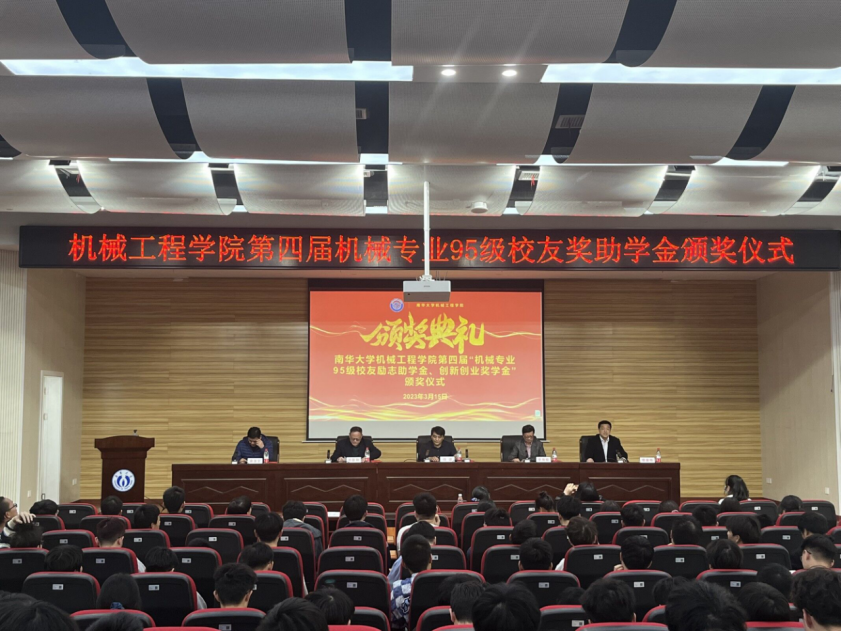 3月15日下午,PA视讯集团官网第四届“机械专业95级校友励志助学金、创新创业奖学金”颁奖仪式在雨母校区崇业楼二楼学术报告厅隆重举行。PA视讯集团官网95级校友代表周波莅临现场,PA视讯集团官网党委书记李双极、正处级组织员彭新和、党委副书记唐康伟、副院长唐德文以及学院全体辅导员、获奖学生及两百余名学生代表参加仪式,仪式由唐康伟主持。