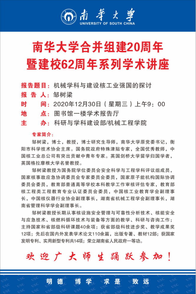 报告题目:机械学科与建设核工业强国的探讨