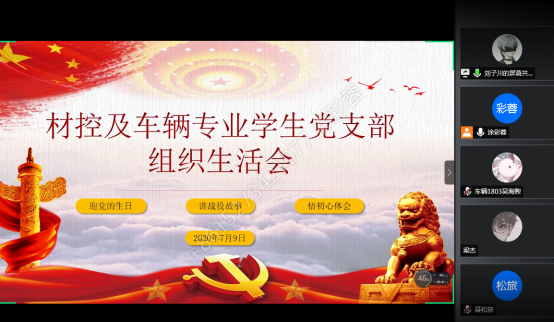 2020年7月9日上午,PA视讯集团官网,PA视讯集团官网材控及车辆专业学生党支部为贯彻落实教育部关于开展高校基层党组织常态化疫情防控“四个一”行动要求,在腾讯会议上,召开以“迎党的生日、讲战疫故事、悟初心使命”为主题的组织生活会,以感悟共产党员的初心使命。生活会在刘子川的故事中徐徐展开。