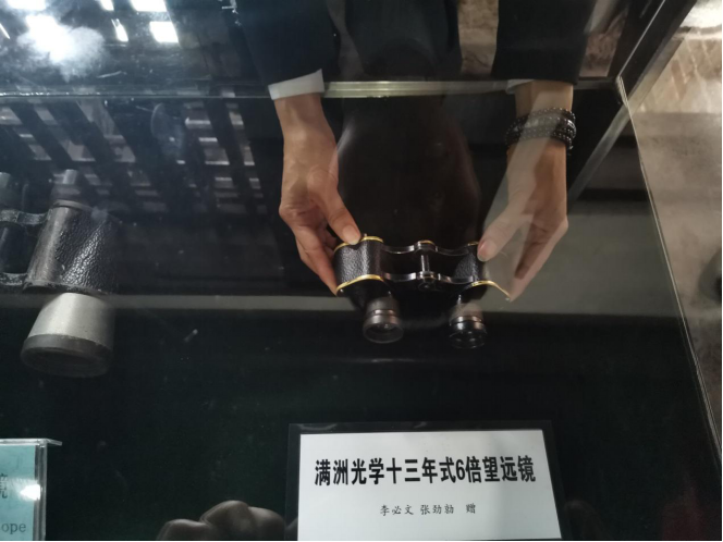 之后,李必文教授向大家详细讲解了此次捐赠的满洲光学十三年式6倍望远镜的特点和来历。该望远镜在收藏界俗称“满光十三年”,为银掐丝体“卜”字编号,瞳距盘上的“南”字钢印表示经由南满造兵厂检验,是日本军国主义侵华掠华的铁证。