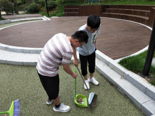 天气很火热,同志们义务劳动的热情也丝毫不减。男生带扫把和撮箕,女生带抹布与垃圾袋。大家互相配合,有的擦宣传栏,有的街道和广场上的落叶,有的清扫楼梯上的灰尘。大家都认真而仔细,虽然汗流浃背,但丝毫没有懈怠,而是坚持了下来。甚至有同志发现街道边停着的小电动轮子底下有一次性筷子的包装袋,都把小电动车抬起来,把底下因为前两天下雨积的泥巴和垃圾碎屑扫了出来。为有奉献精神和精益求精的党员同志们点赞!