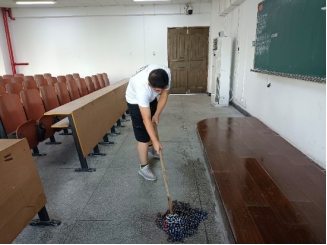 上午9点,参与的同学们自带工具来到南华楼开展大扫除活动。大家活力充沛,只愿把干净整洁的教室带给同学们。