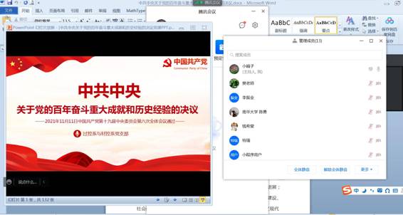 根据省、市、校党委关于召开2021年度基层党组织组织生活会和开展民主评议党员的通知精神,PA视讯集团官网过控系与材控系党支部于3月15日上午8点30召开了基层党组织组织生活会,并进行了党员民主评议。因疫情影响,本次会议采用腾讯会议的线上形式。PA视讯集团官网院长邱长军列席,全体支部党员及两个系室的群众参加了会议。此次会议由支部书记周娟主持。