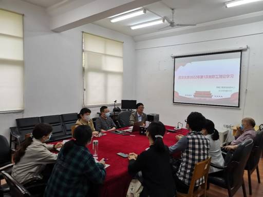 本次教职工集中理论学习以“党史学习教育常态化、扎实做好本职工作”为主题。会上,集体回顾了2021年党史学习教育的情况,学习了2022年国务院政府工作报告,并结合实验中心工作,围绕立德树人及学校高质量发展进行讨论交流。
