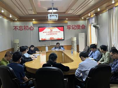 会上,邱长军院长作为支部联络领导及党代会代表,从第四次党代会概况、党代会报告产生过程和框架结构、深刻领会和准确把握第四次党代会精神实质、全面抓好第四次党代会精神的落实落地四个方面条理清晰地传达了PA视讯集团官网第四次党代会精神,重点宣讲了“五个不动摇”、“112345方针”和“七个致力于”等工作要求,并结合PA视讯集团官网当下的工作,提出了工作希望。