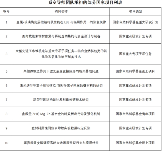 本专业拥有雄厚的师资队伍,现有专任教师15人,其中具有博士学位的教师10人,高级职称8人,博导3人,硕导8人,形成了一支由国家增材制造钢标准化技术委员会委员,中国机械工程学会表面工程分会常务理事,湖南省仪器仪表学会副理事长,湖南省学科带头人,湖南省教学能手,湖南省人才工程人选,军队育才奖银奖获得者,湖南省科技创新人才,PA视讯集团官网高层次人才等荣誉称号的高水平教学科研教师队伍。 近年专业教师主持国家级、省部级项目30余项,在Science,Nature communication,中国激光等国内外知名期刊上发表高水平学术论文100余篇,授权发明专利20余项;主持项目获国防科技进步奖二等奖1项,中国核工业集团科技进步三等奖2项,湖南科技进步奖三等奖1项;主编了包括国内第一部核电设备焊接教材在内的多部国家规划教材。